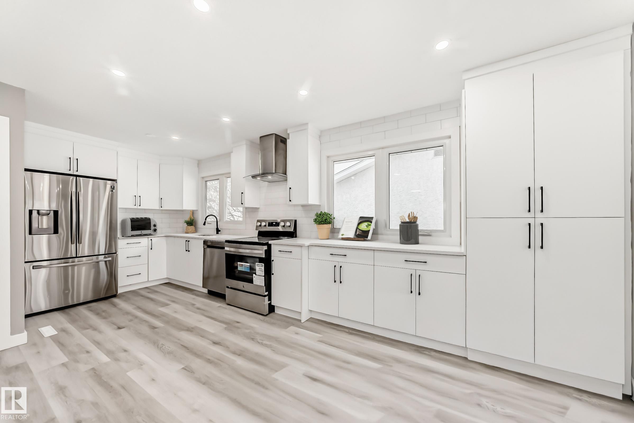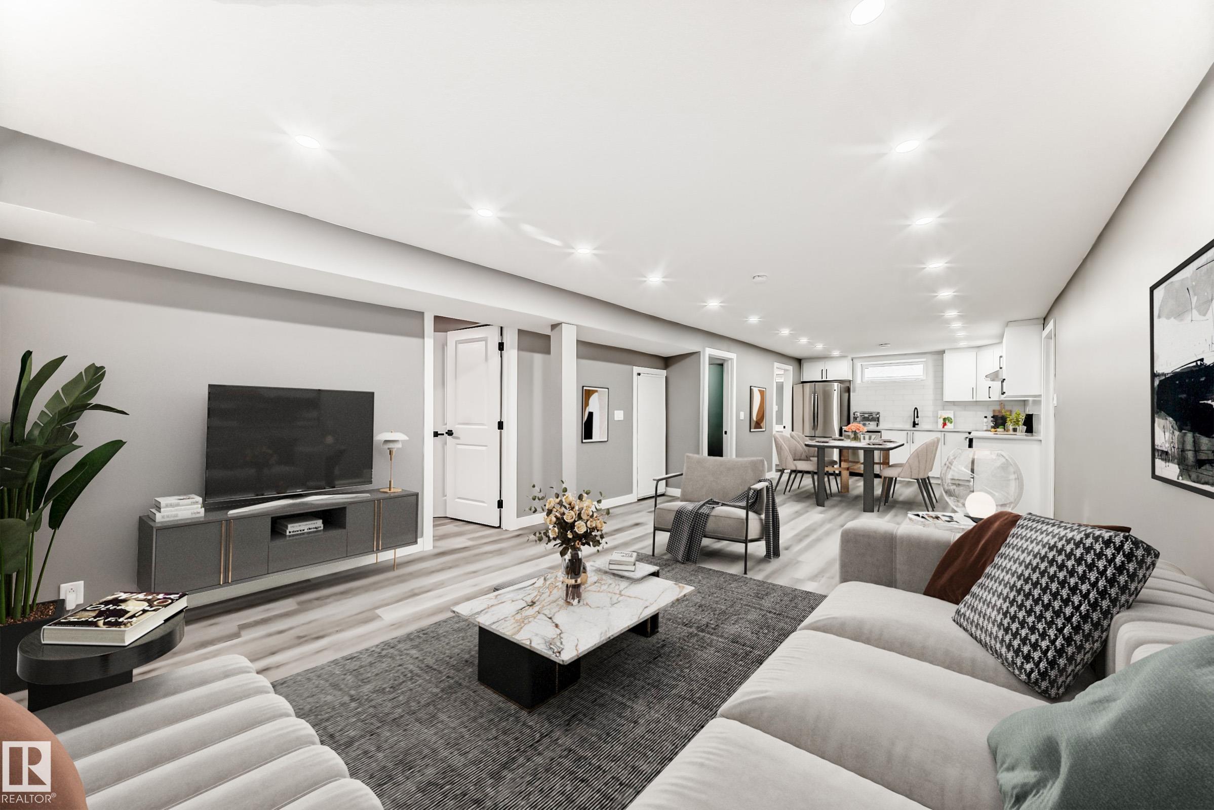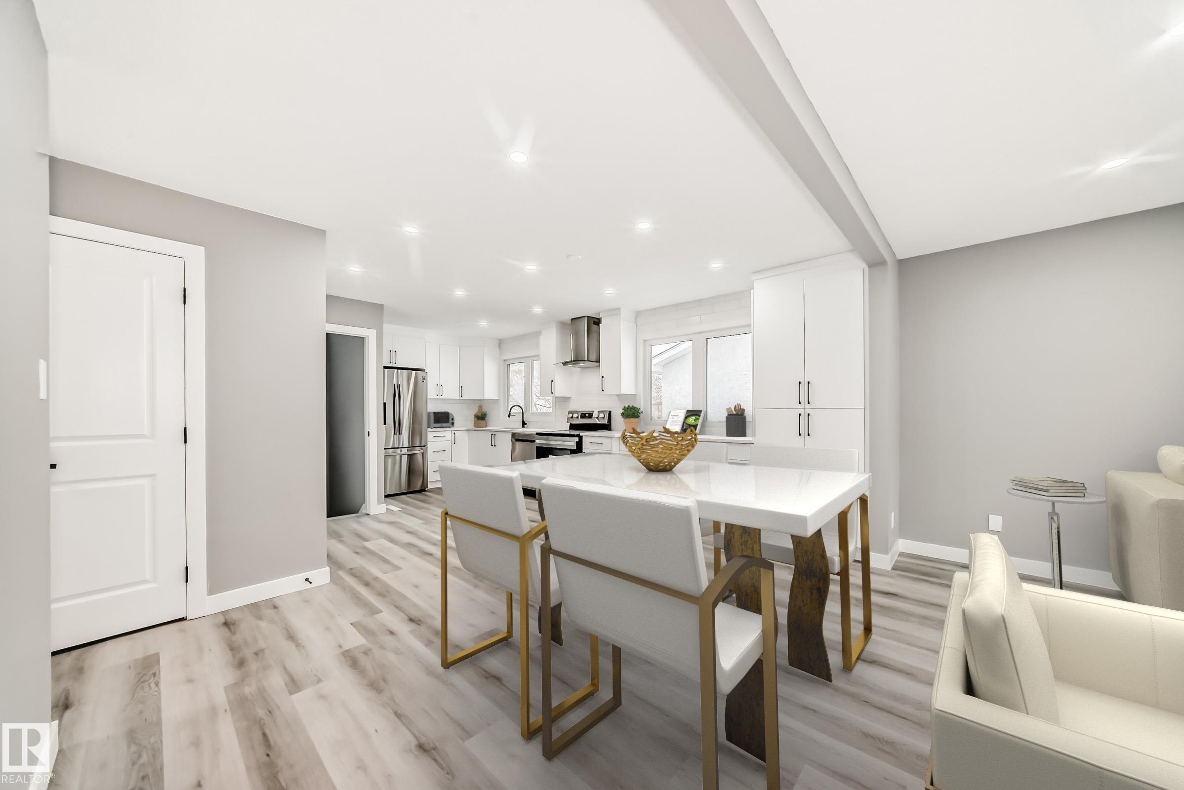 Prepare to be wow'ed by this beautiful home perfectly located in a highly sought-after neighbourhood in Delwood. Fully turn-key. Completely renovated Top to Bottom. Brand new 2 kitchens, appliances, High Efficient Furnace, New Windows, New Roof, New flooring and bathroom, Freshly painted. Walking into this home you are greeted by the large bright and open family room/dining room with large windows, spacious kitchen, Master bedroom with sunroom, 2 more bedrooms, separate 4 pc bath & Storage. Basement has it's own SEPERATE ENTRANCE with large family room/dining room, 2nd Kitchen, 2 more bedrooms, Full Bathroom, laundry & storage room. Huge private backyard with Double detached oversize garage, Sunroom & RV Parking. It is one of the best commute to anywhere with Yellowhead Hwy being 5 minutes and Anthony Henday being 9 minutes away, Easy access to schools, park, Londonderry Mall, Northgate Mall & all amenities. This is a terrific family home you do not want to miss! Some photos are virtually staged MLS®: E4467015 - Delwood Bungalow $524,900