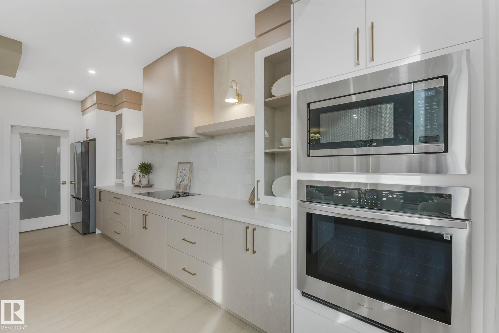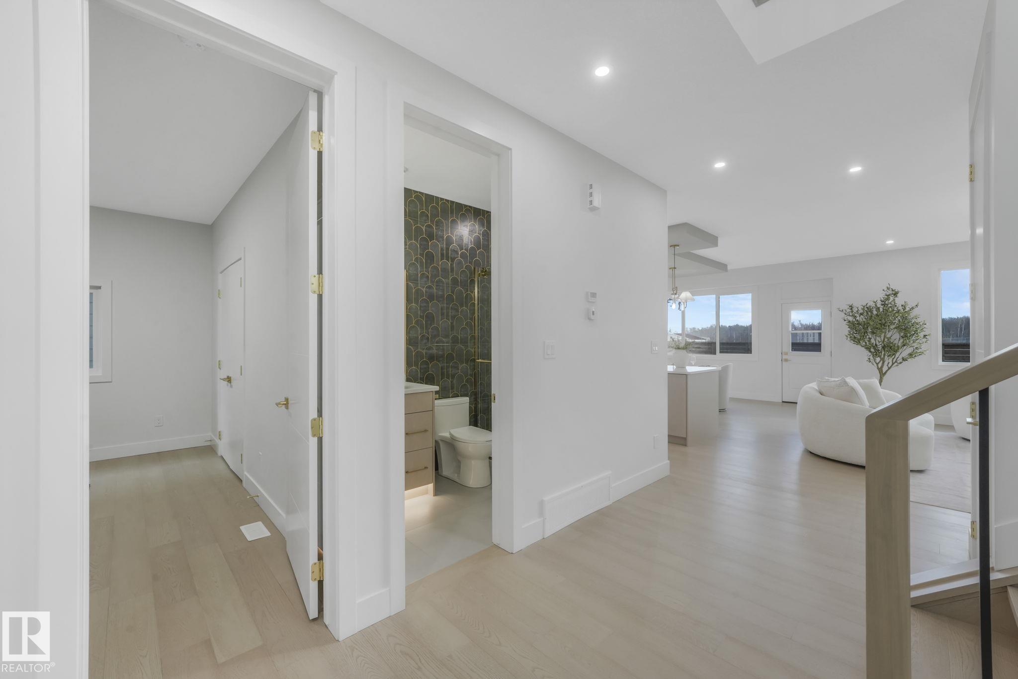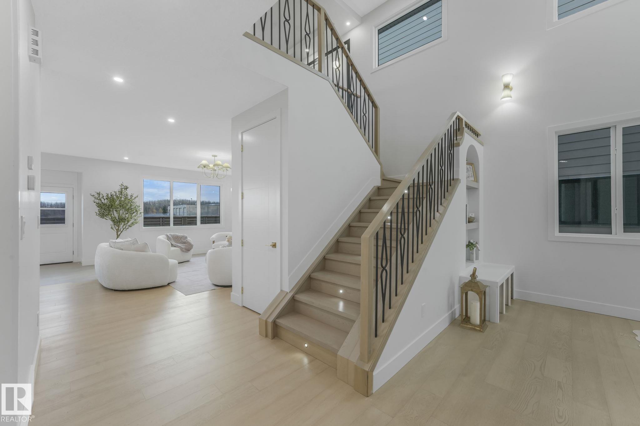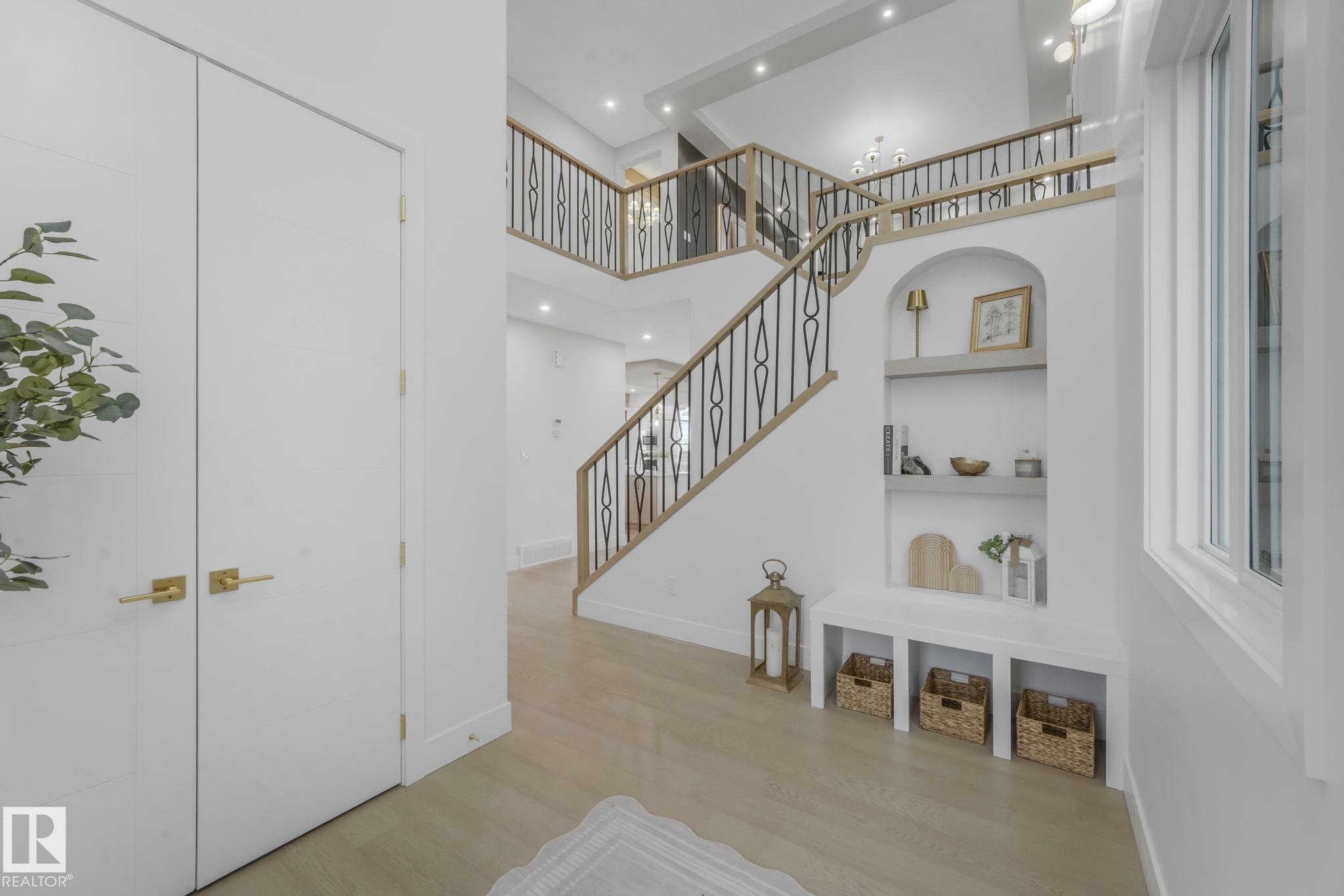 Located in the sought-after Hillshire community, this stunning home offers over 2,800 sq. ft. of luxury living backing onto green space. The main floor features a full bath and versatile bedroom or office--perfect for guests or family. The chef-inspired kitchen includes high-end stainless steel appliances, a secondary kitchen, and premium finishes throughout. Upstairs, the primary suite overlooks the green space with vaulted ceilings accented by a wood beam, a spa-like 5-piece ensuite with a double-entry shower, and a walk-in closet with custom built-ins. The spacious bonus room off your stairs is paired perfectly with the entry level open to below for a grand and seamless feel. Every detail showcases exceptional craftsmanship, thoughtful design, and modern elegance--making this home a true Hillshire standout. MLS®: E4464594 - Hillshire 2 Storey $929,000